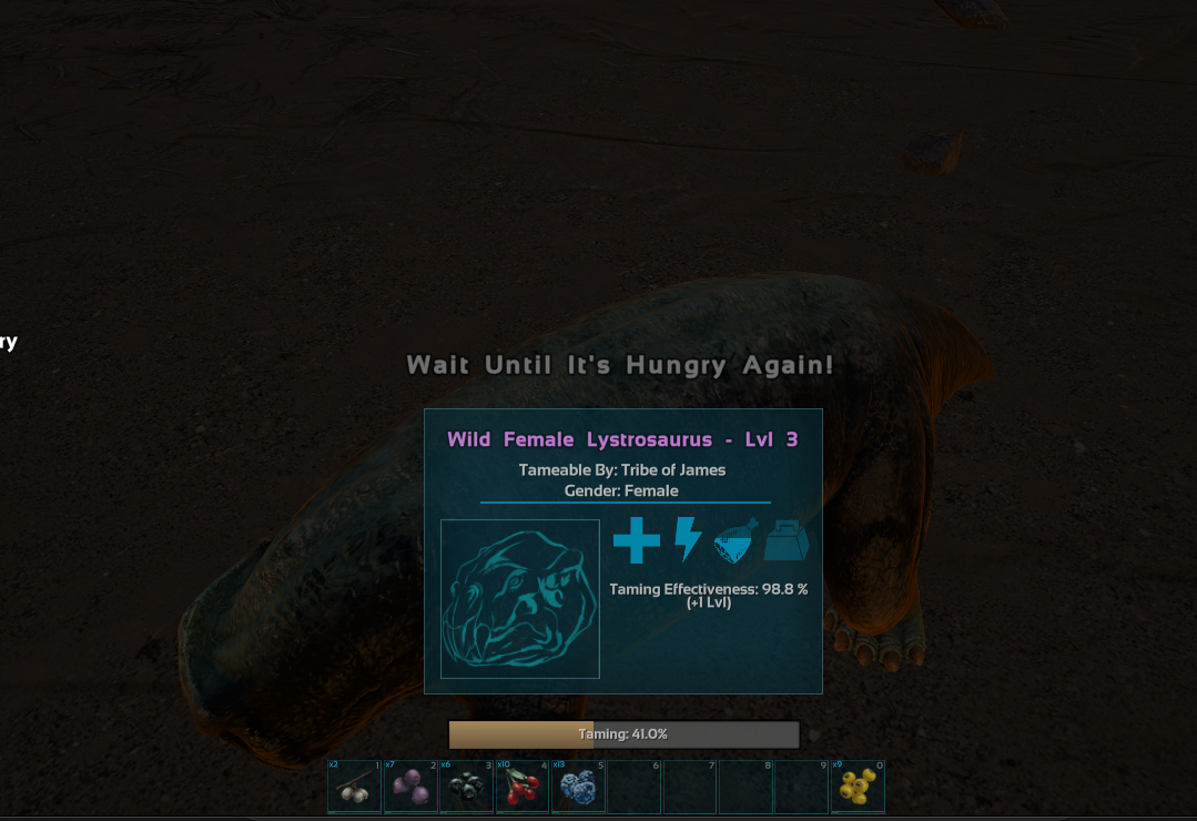 [I tamed my first dinosaur. He died several hours later. Was killed by a hostile dinosaur.]